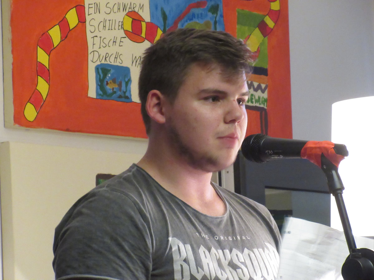 Aufgeregt waren sie schon, die Schülerinnen und Schüler der 9. Klassen der Schule im Augustental, als sie heute Abend mit ihren selbstgeschriebenen Texten auf die Bühne gingen!